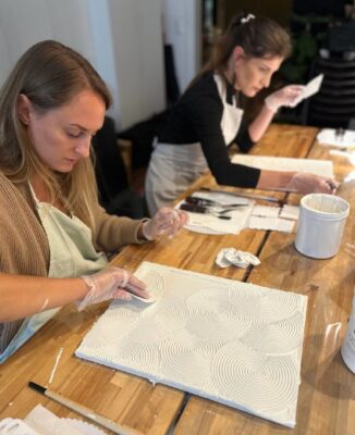 In diesem 4-stündigen Texture-Workshop arbeiten wir auf zwei Leinwänden (30 × 40 cm und 40 × 50 cm) mit Strukturpaste und verschiedenen Spachteltechniken.